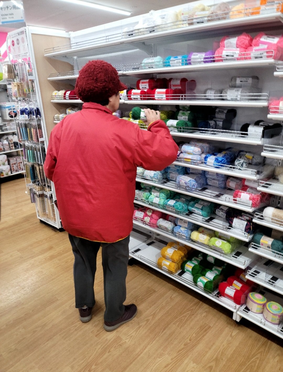 I様は編み物をするために毛糸が欲しいと一目散に手芸コーナーへ!